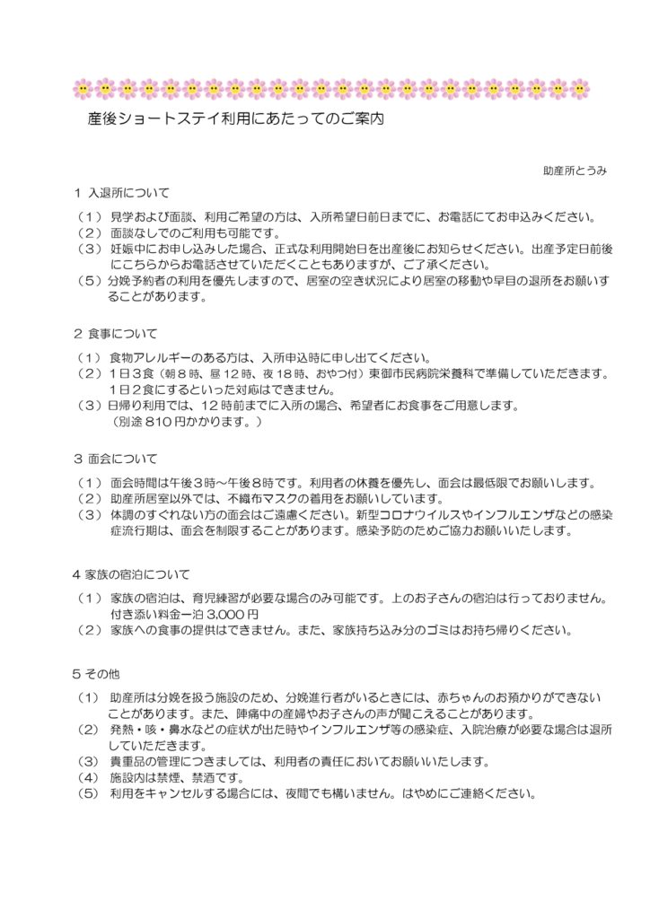 - 出産が重なった場合に利用日の変更をお願いすることがあります。 ご理解ご協力いただけますようお願いいたします。